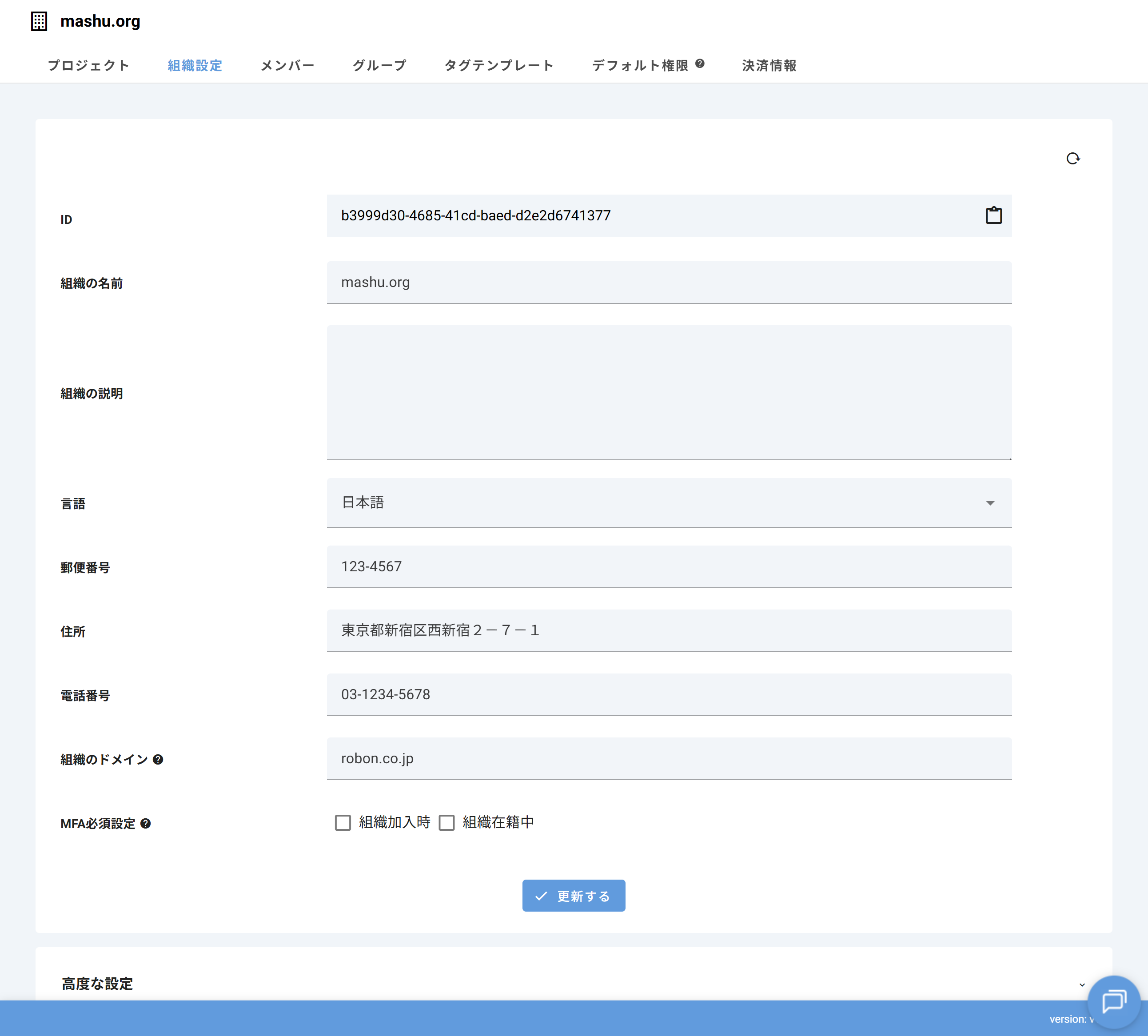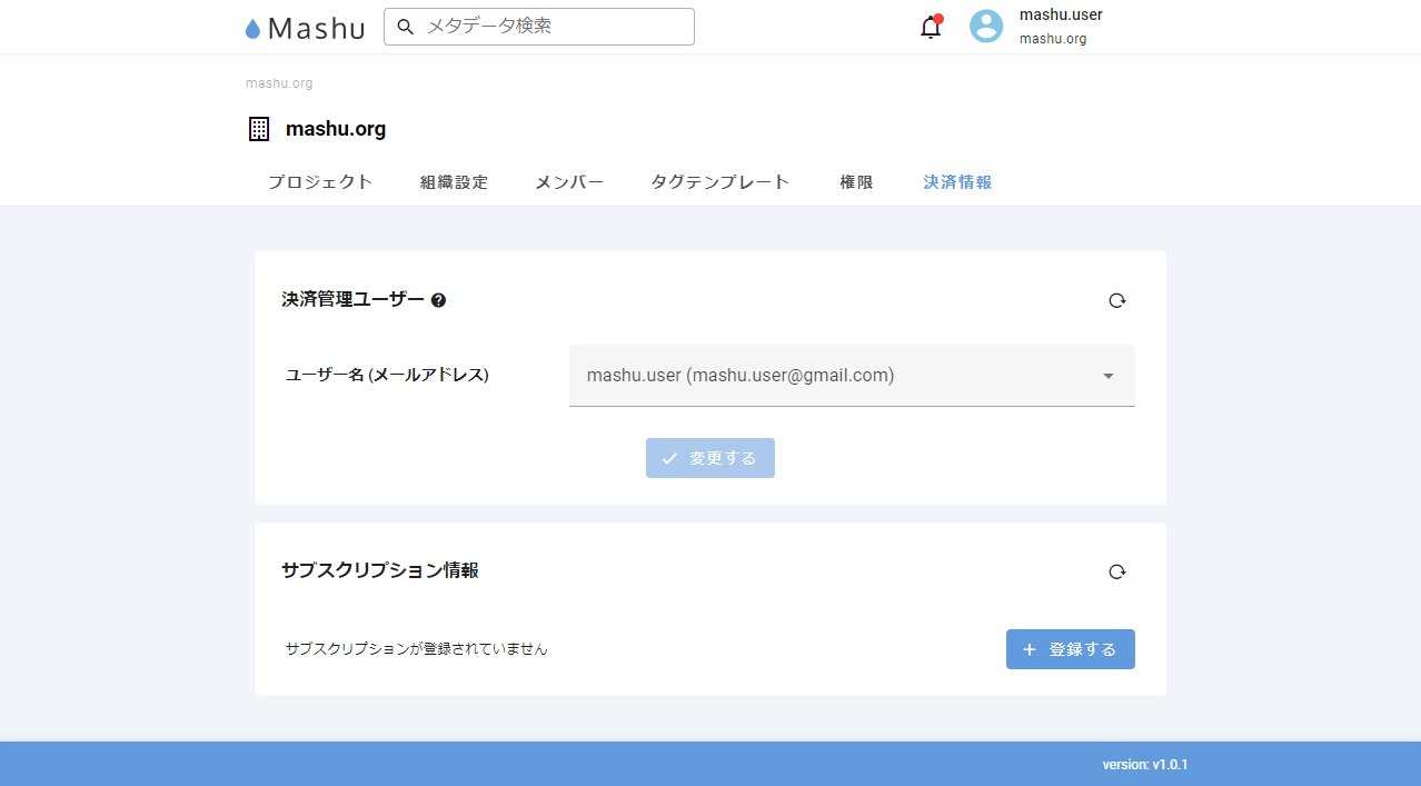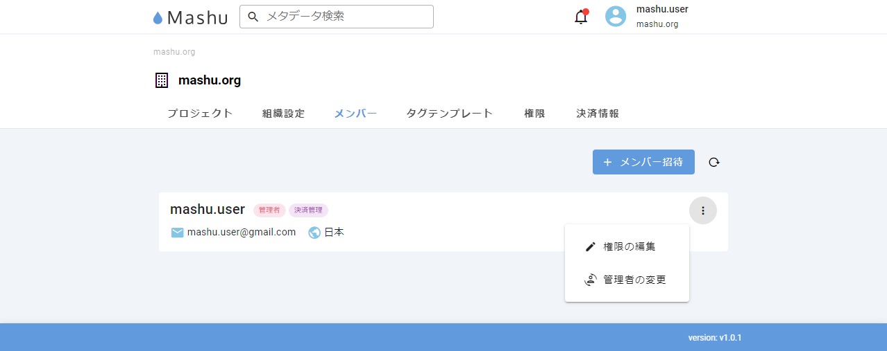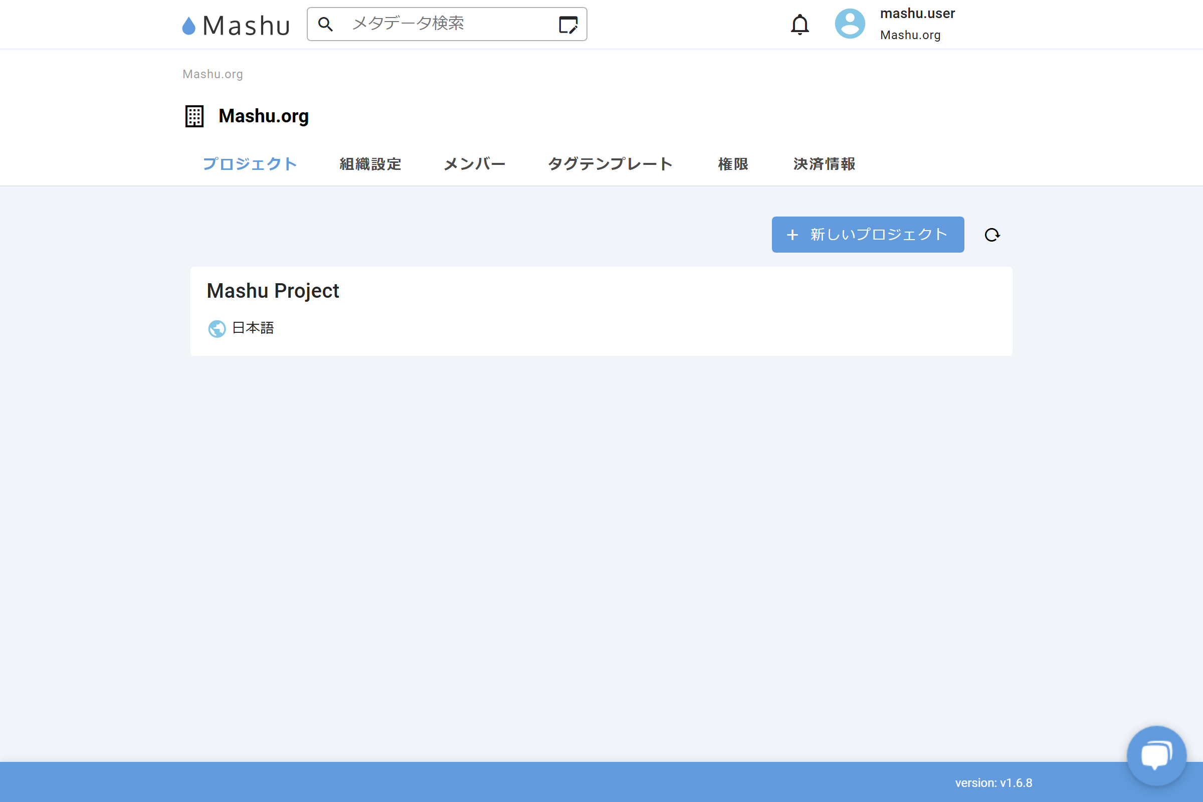 Mashuのデータ構造の最上位は組織です。組織はメタデータの所有者であり、Mashuの契約の主体であり、Mashuの利用料をお支払いいただく単位です。