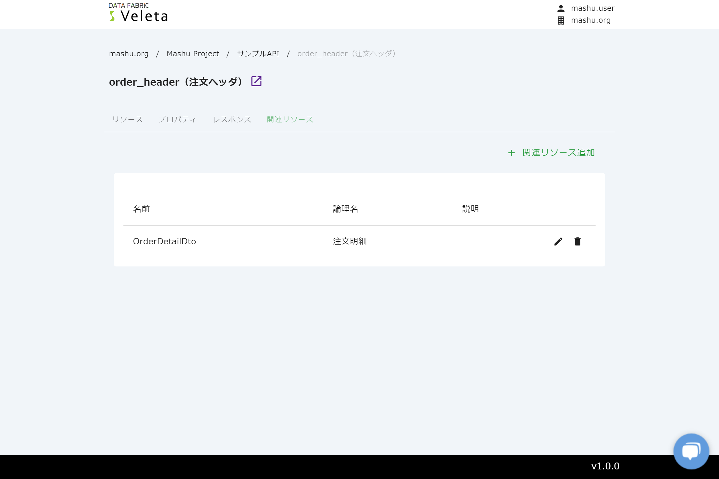 リソース画面の関連リソースタブには親子関係などリソース同士を関連付けすることができます。関連付けたリソースはAPIでまとめて読み取り、書き込みできるようになります。