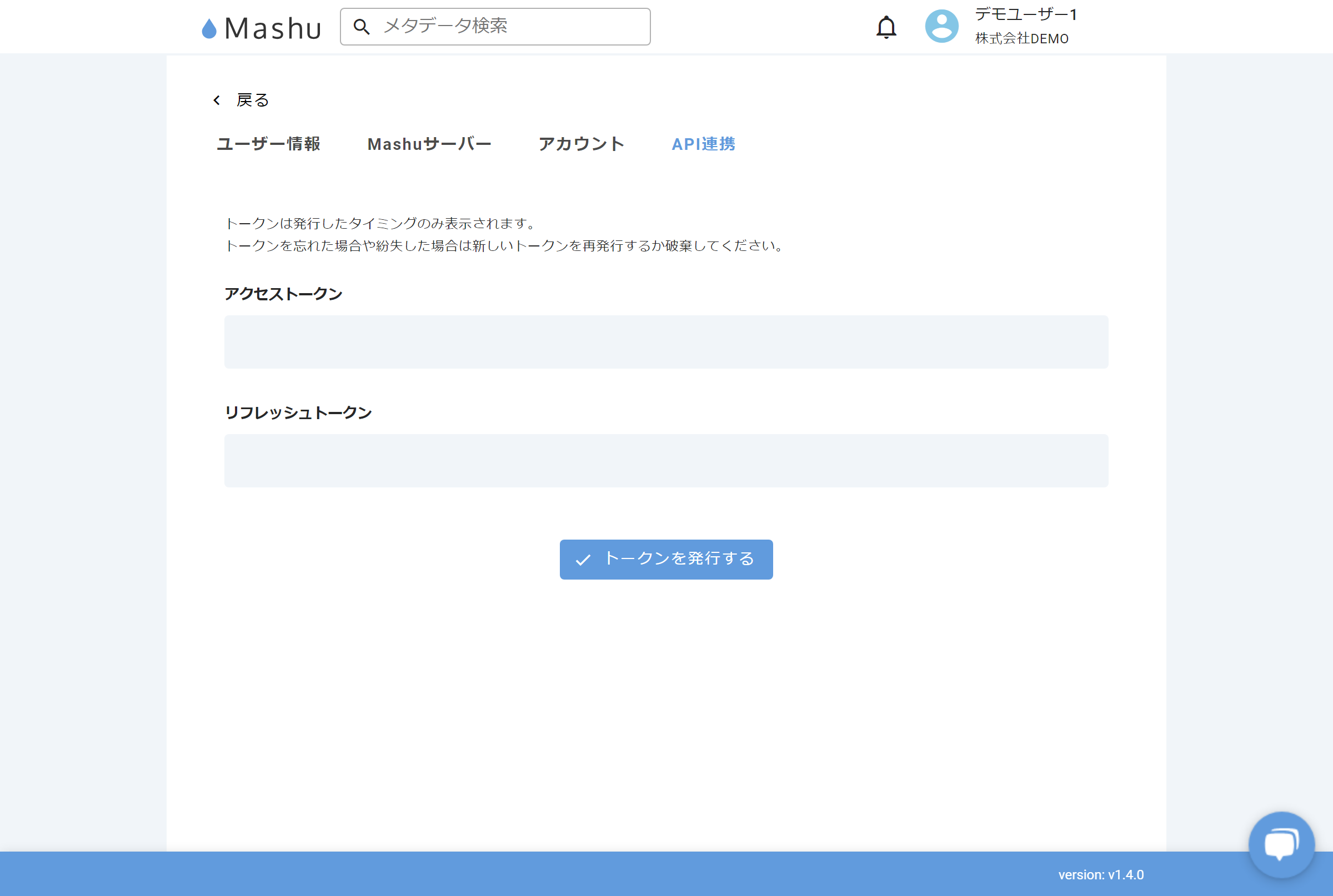 MashuのAPI連携機能を使用する場合、事前にお問い合わせください。 お問い合わせページへ 1. アクセストークン・リフレッシュトークンを発行する MashuとAPI連携するにはユーザー設定画面のA...