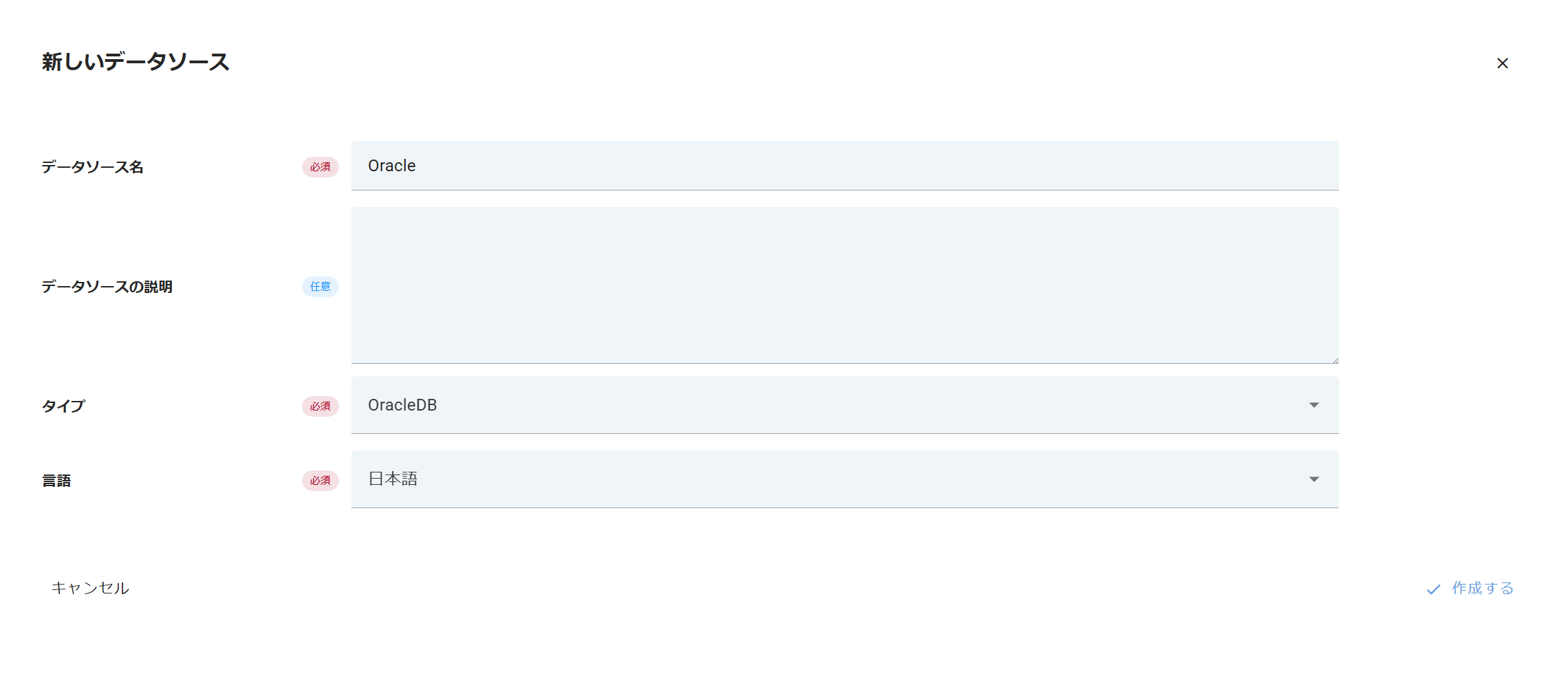 1. データソースの作成 Mashuに新しいデータソースを作成します。データソースのタイプ選択画面で、「Forguncy」を選択してください。