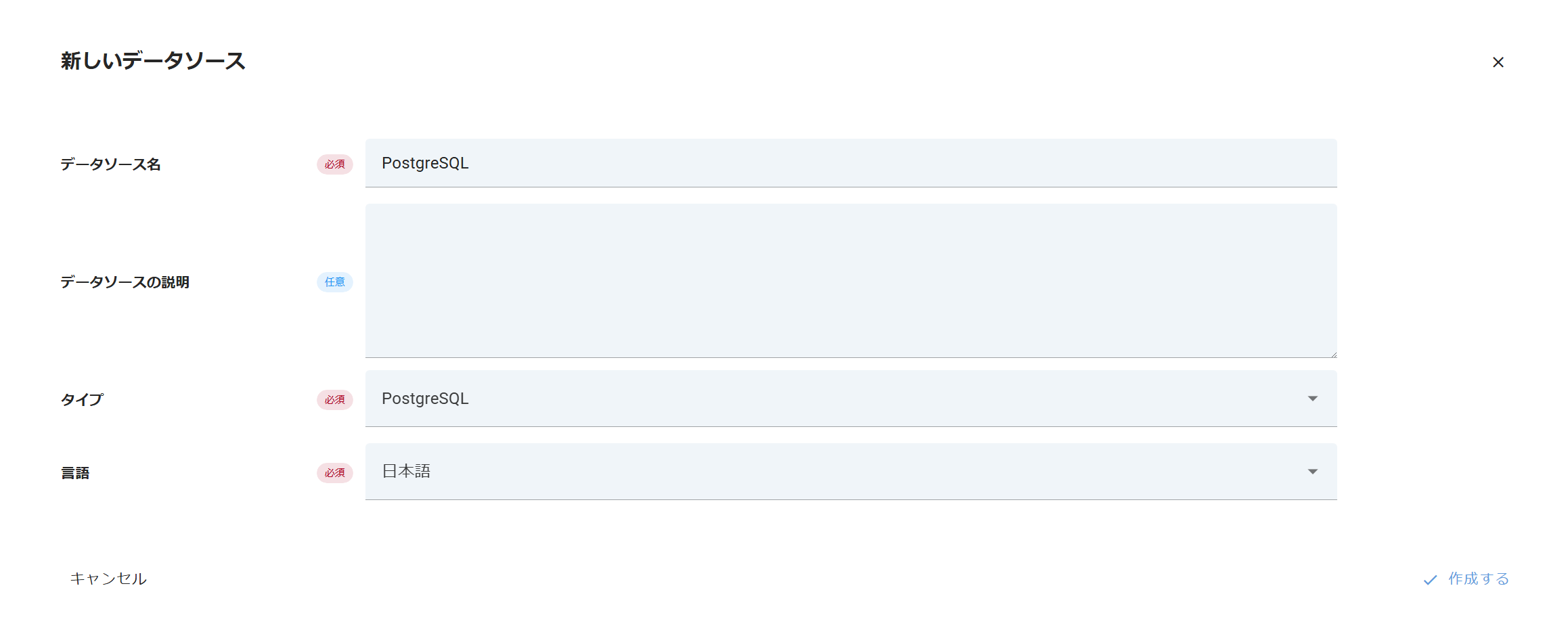 kintoneに対するメタデータソースを作成するためには、メタデータソースを作成する際にタイプとして kintoneを選択する必要があります。