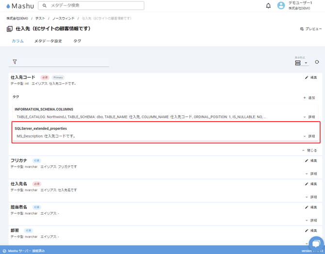 カラムの拡張プロパティにある情報をMashuで取得することができます。