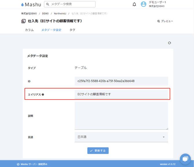 Mashu のカラムに設定されたタグ情報に値が反映されます。