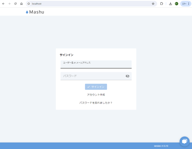 登録した Mashuの [ユーザー名] or [メールアドレス] とパスワードを入力しサインインください。