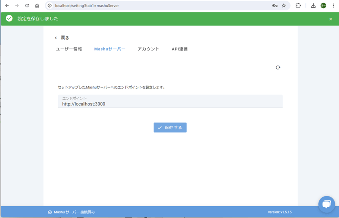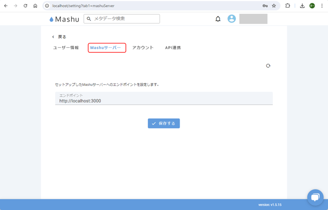 [Mashu サーバー] をクリックし、Mashuサーバーへのエンドポイントを設定します。