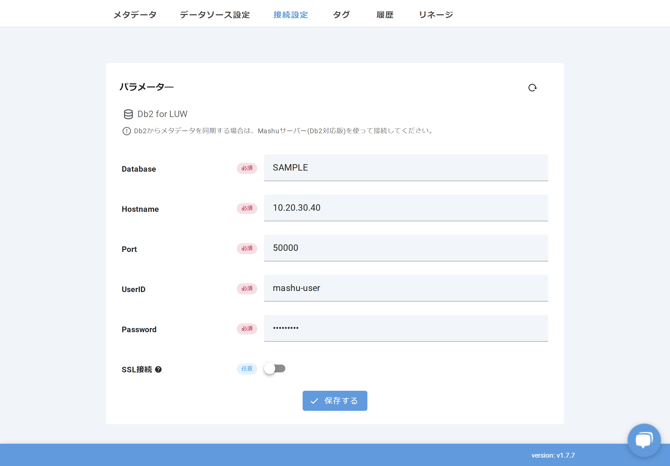 Db2からMashuへメタデータを取り込むためには、Mashuサーバーのセットアップが必要です。Mashuサーバーのセットアップ方法はオンプレミス用のMashuサーバーを参照してください。