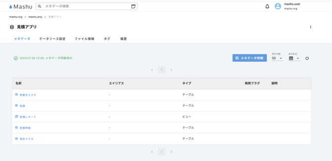 3. Forguncyのテーブル情報をMashuにアップロードし、メタデータを同期する