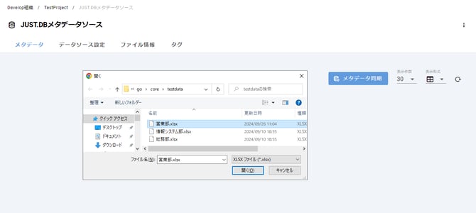 3. メタデータ同期ボタンを押下するとエクスプローラーが起動するので、エクスプローラーからMashuに取り込みたいテーブル定義書を選択してください。
