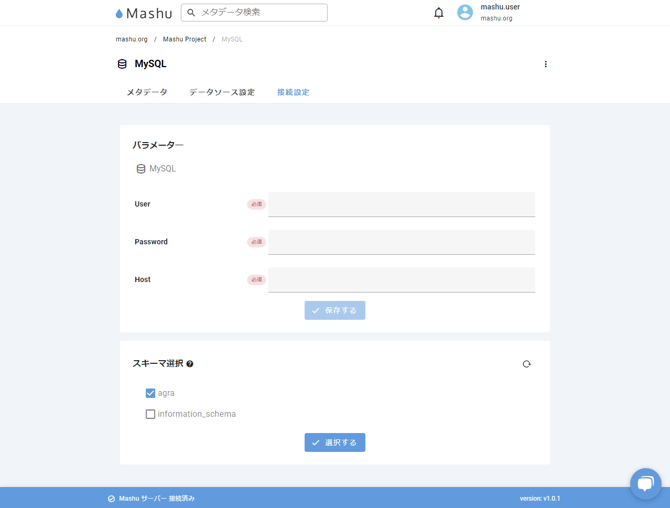MySQLからMashuへメタデータを同期するためには、Mashuサーバーのセットアップが必要です。Mashuサーバーのセットアップ方法はオンプレミス用のMashuサーバーを参照してください。
