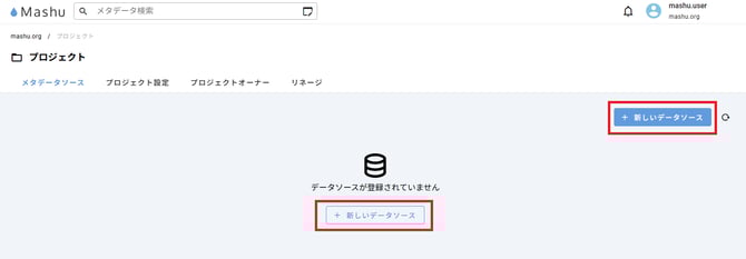 OpenAPI仕様書からリネージ・メタデータを取り込むために、プロジェクト詳細画面からデータソースを作成します。