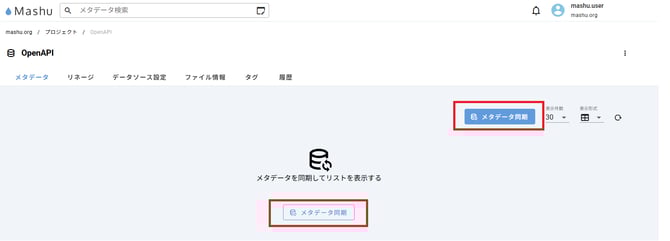 メタデータ同期をすると「メタデータ」と「リネージ」をMashu上に取り込みます。