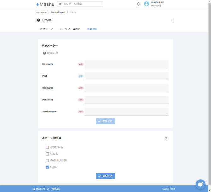 OracleからMashuへメタデータを取り込むためには、Mashuサーバーのセットアップが必要です。Mashuサーバーのセットアップ方法はオンプレミス用のMashuサーバーを参照してください。