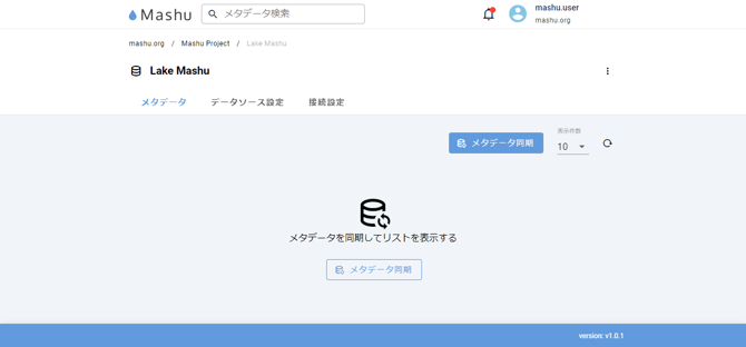 Mashuのデータ構造は、組織の下にプロジェクトがあり、プロジェクトの下にメタデータソースがあります。メタデータソースは、データを管理するシステムの単位に作ります。