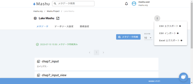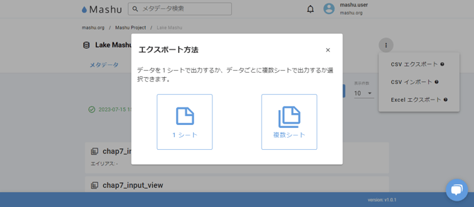 CSVエクスポートやExcelエクスポートを行うことができますので、Mashuが管理するメタデータをMashuの外部でも活用することができます。