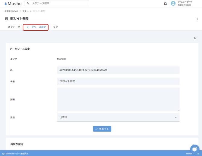 Mashuから [新しいデータソース]をクリックして、データソースを作ります。