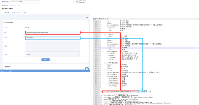 53行目に 『10,データソースのID,データソースの名前,,ja』という形式で入力し、CSVファイルを保存します。
