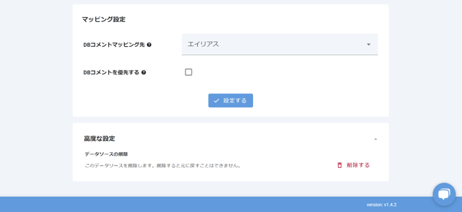 マッピング設定では、データベースのテーブルやカラムに設定されたコメントをMashuのエイリアス・説明のどこにマッピングするか設定できます。Mashuのエイリアス・説明にすでに入力がある場合はデータベースのコメントを無視しますが、「DBコメントを優先する」をチェックするとデータベースのコメントを優先してMashuに取り込みます。