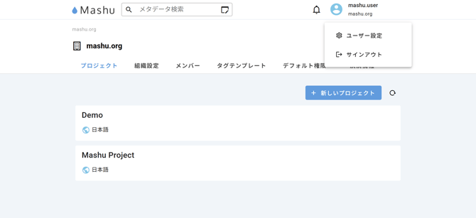 多要素認証を設定するには、まず右上のメニューから「ユーザー設定」を選択してください。