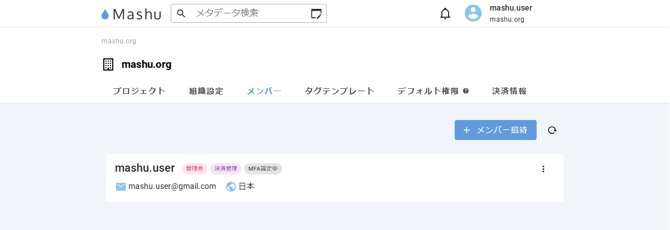 組織の管理者はメンバーのMFA設定状況を確認できます。MFA設定中というステータスが表示されているメンバーはMFAを設定しています。