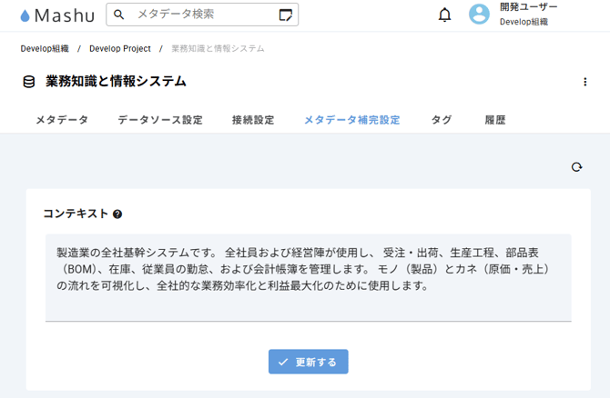 メタデータ補完を実行する前に、「コンテキスト」と「マッピングルール」の2つを設定します。
