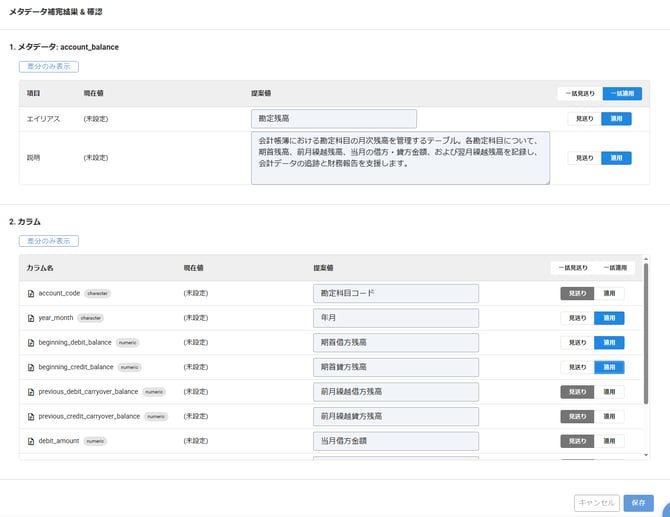 - 内容の確認・修正: AIが提案した値が表示されます。必要に応じて直接編集が可能です。